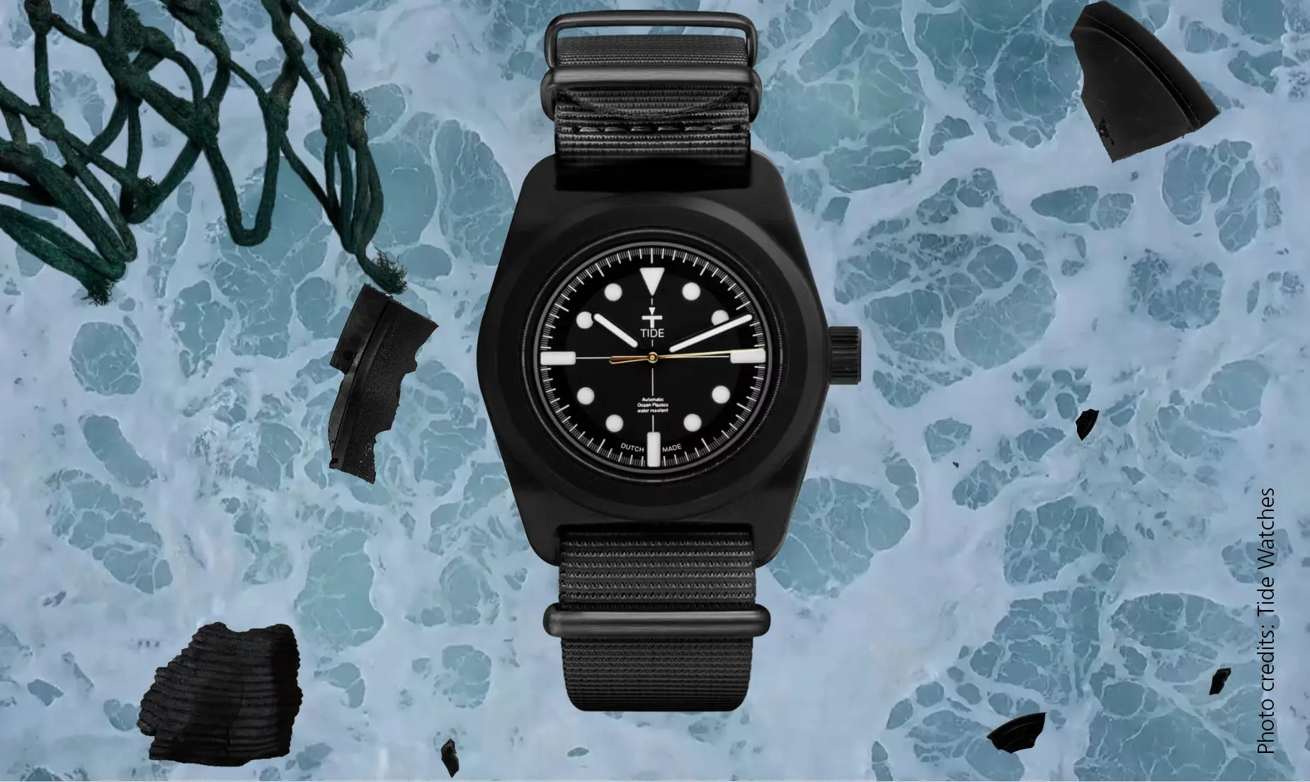 The company Tide Watches from Rotterdam transforms plastic waste from oceans and rivers into high-quality timepieces. The 40 mm case of the watch “The Kraken” is made entirely from recycled ocean plastic – a material that once threatened the environment and now lives on in the form of an elegant watch.